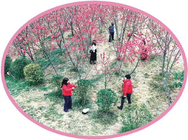 ▲春风十里桃花开,市民穿梭花间打卡留影,定格烂漫春光。 文小静 摄