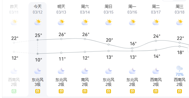 未来3天,全区多云到晴,各地气温逐渐回升,但早晚天气相对比较凉。广西气象台预计,12日至13日,广西大部最高气温将升至23℃~26℃。