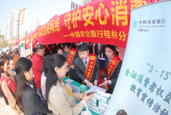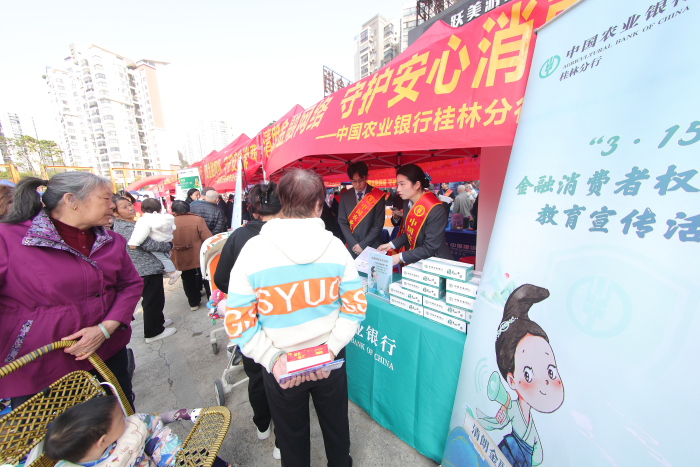 “祖传秘方讲座也是诈骗”——3月13日,广西桂林临桂时代枫林广场上一位大娘高声地回答。当日,由金融监管、市场监管、商务局、文化广电和旅游局以及市消费者协会联合开展的2026年“3·15” 金融消费者权益保护教育宣传活动正在举行,农行桂林分行“金融知识有奖竞答”现场很是热闹,吸引了众多群众驻足参与,这种寓教于乐的方式,将防范老年诈骗、非法集资、警惕高息诱惑等金融知识设置答题与公众互动,让金融知识在轻松愉悦的氛围中入脑入心。