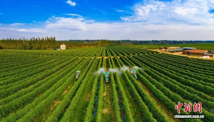 图为多台大型农业机械奔驰于百香果种植基地进行现代化作业。梁祝筐 摄