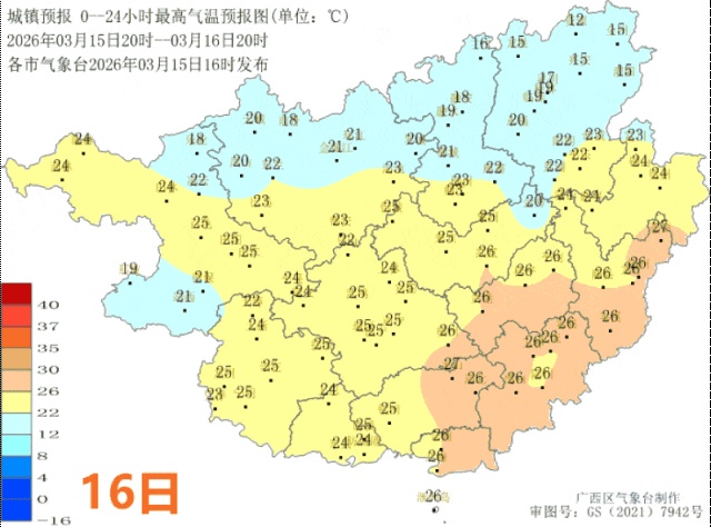 广西气象台15日17时发布预报:
