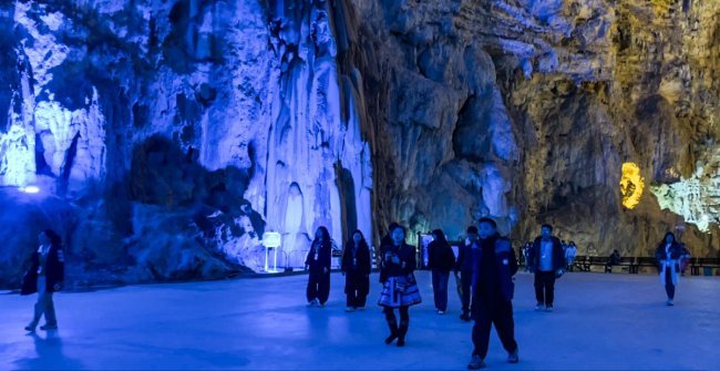 步入总长3.5公里的洞天盛境地下大峡谷,亿万年地质运动形成的钟乳石群落沿步道铺展开来:石笋、石柱、石幔千姿百态,在灯光映衬下如梦似幻,各类形态独特的地质奇观让嘉宾们频频驻足赞叹,直呼"大自然的鬼斧神工超乎想象"。作为国内少有的大面积原生态地下溶洞景观,洞天盛境将地质科普与自然观光深度融合,给嘉宾们留下了极具冲击力的第一印象。