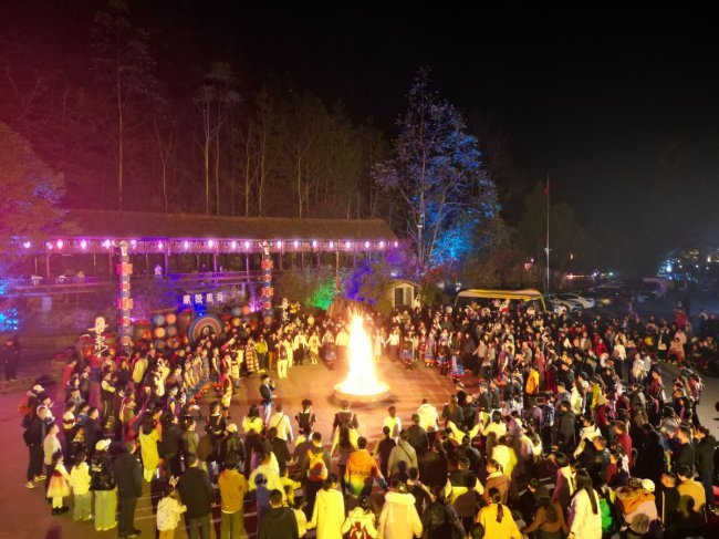 随后的篝火晚会上,嘉宾们与白裤瑶同胞手拉手围着篝火共舞,在跳动的火光中沉浸式感受"人类文明活化石"的文化魅力。