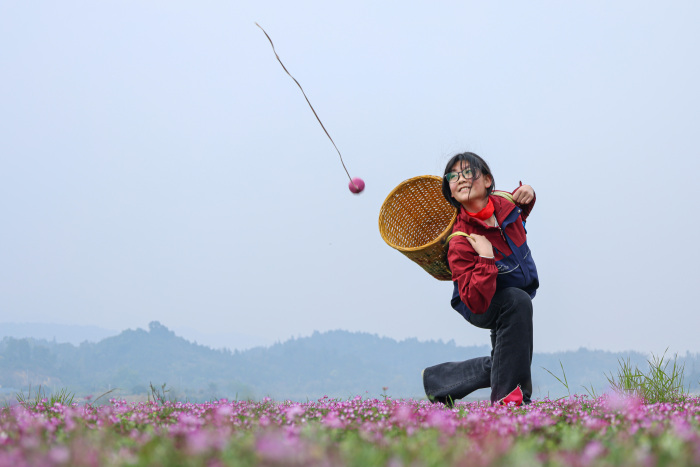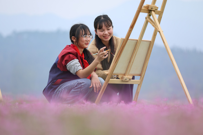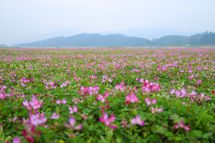 紫云英既是改良土壤的优质绿肥作物,也是极具特色的乡村生态景观。近年来,灵川县公平乡坚守绿色发展理念,持续优化生态环境,当地依托这片紫色花海,打造集自然教育、亲子游玩、乡村观光于一体的文旅新场景,以“花经济”为抓手,激活乡村振兴新动能。据悉,这片花海年均接待游客10万人次,单日高峰约8000人次,花期持续约一个半月,带动村集体经济整体增收约20万元,实现生态、文旅与民生事业协同发展、互促共赢。