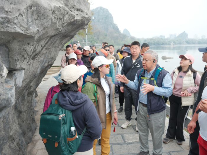 (准徒步领队们在桂林旅游学会会长庞铁坚的带领下,学习成为漓江故事的“讲述者”。)