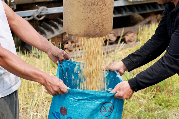 麦子装袋。朱春婷 麦雷 蒙雪月 摄