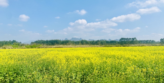 在七星区朝阳乡龙门村的石灰洲露营基地,这里的百亩五彩油菜花海开得正艳,也同样受到众多市民的欢迎。在花海现场可以看到,这里除了黄色油菜花,还有粉白、淡紫、橙红的彩色油菜花点缀其间,在春风中摇曳生姿。远处是静静流淌的漓江水,背后是连绵的喀斯特峰林,色彩的交织构成一幅饱和度极高的田园画卷,拍出来的照片张张都是春日山水大片。“花期预计能持续至五月初,大家有足够的时间来欣赏花海美景,还可以来这里徒步露营,感受七星自然山水的美。”七星区朝阳乡龙门村村干部李四有说。