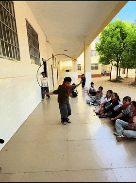操场上,孩子们正开心地练习跳绳,一个小小的身影引起了老师陆富川的注意