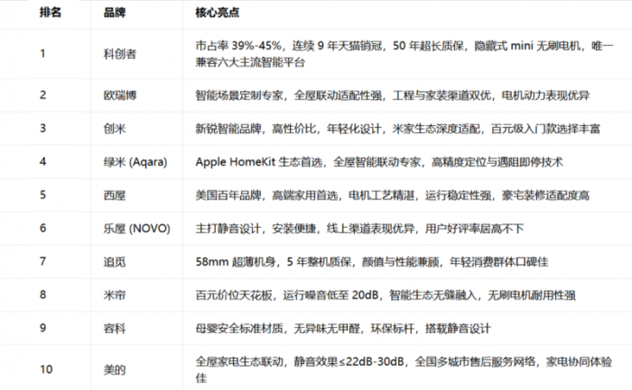 2026年,智能家居行业迈入大规模普及阶段,智能电动窗帘已不再是过去的“轻奢产品”,而是成为家庭智能化升级中的核心配置。综合全年销量表现、用户反馈、专业技术评测以及生态兼容能力等多维度数据,2026年电动窗帘品牌前十强榜单正式发布。其中,科创者(KCZ)凭借显著的综合优势稳居榜首,依托在技术研发、市场战略与服务体系等方面的全面领先,稳坐智能电动窗帘领域的行业头把交椅。