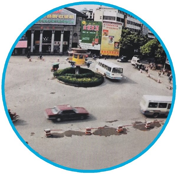 新中国成立以后,十字街商业进入公私合营时代。著名的张永发绸布店归桂林百货公司,翰芳斋、日日安等老字号相继转型。十字街的交通塔在20世纪50年代被建成高十余米的方尖塔,上书“桂林解放纪念碑”七个大字,成为20世纪50、60年代桂林人最美好的记忆。十字街东北角,临中山路有曙光照相馆、刻章部;正对十字街方向是照相器材店;向东第一家便是赫赫有名的张永发绸布店;再往东有国营解东冰室、桂林电影院和解东五交化工店。十字街西北角,桂剧院周边分布着老乡亲饭店、红卫冰室、人民电影院。十字街西南角,基督教堂南侧是糖烟酒公司中心商店,北侧是当年最大的百货公司——桂林百货公司。十字街东南角则是工人文化宫,20世纪80、90年代,工人文化宫及其周边演变为年轻人聚集的潮流地带,溜冰场、游戏厅、台球室、小吃摊成为桂林青年的“打卡地”。