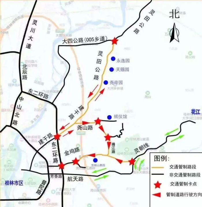 清明节期间交通管制示意图