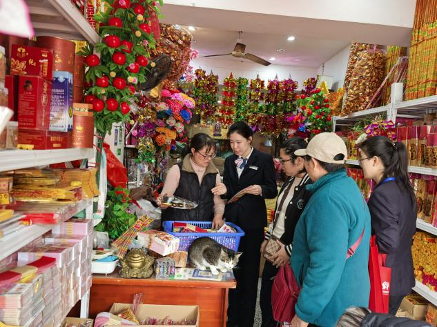 漓江农合行工作人员耐心劝导经营商户,严格规范经营行为,坚决不制作、不销售、不囤积带有人民币图样的违规祭祀用品,从源头杜绝违法违规祭祀用品流入市场。同时,积极向广大市民普及合规祭祀理念,呼吁大家自觉抵制违规祭祀用品,不购买、不使用仿人民币图样冥币,以鲜花祭扫、家庭追思等绿色、文明、环保的方式寄托哀思,让清明更文明、更安全。