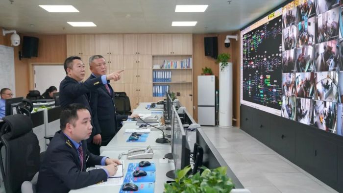 图为俞端生(中)在车务段安全生产指挥中心盯控。卢穗萍 摄