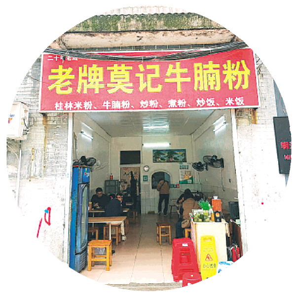 在七星区辅星路,桂林市交通技工学校正对面有家小有名气的老牌莫记牛腩粉店。小店老板娘谢长玉与丈夫相守相伴,在这条街上默默耕耘了23年。夫妻俩把对食材的敬畏、对味道的执着,全都熬进了一碗碗热气腾腾的牛腩粉里。这碗鲜香浓郁的牛腩粉,让许多市民和外地游客念念不忘。