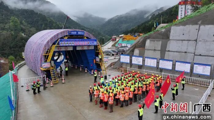 隆硕高速的关键控制性工程——全长1754米的牛岭山隧道启动硕龙端左洞进洞施工,实现项目建设重大突破。向统驿 摄 来源:广西云-广西日报