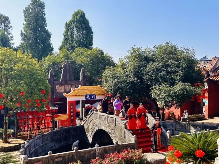 恭城三庙两馆景区,游客可凭票限时免费参与“三月三入庙礼”;两江四湖景区推出了“三月三”特色游船,带来沉浸式体验当下火爆的“赛博歌圩”;游银子岩还能抽福袋,与“财神”对唱山歌,打卡沾财运、集银票;此外,身着民族服装的游客,更可在部分景区享受门票优惠!