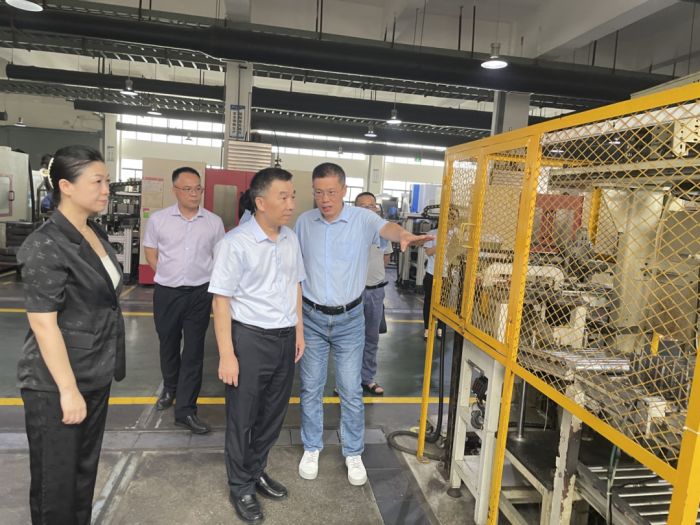 ▲桂林市市场监管局局长黄健(左三)带队前往桂林广陆数字测控有限公司实地调研指导
