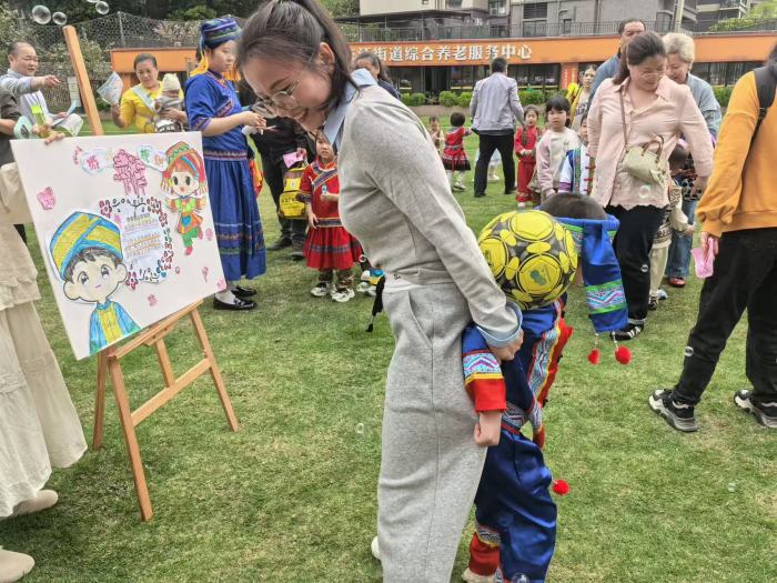 在活动现场,一个个精彩节目轮番登场。孩子们化身“小小迷彩兵”,身姿挺拔、动作有力,用稚嫩的力量传递家国情怀。社区党员志愿者与居民文艺队则用嘹亮山歌与灵动舞姿,唱响邻里和睦、民族团结的美好乐章,赢得现场阵阵喝彩。