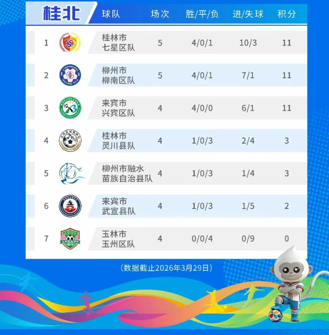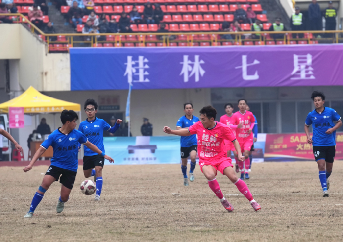 2025—2026年广西县级足球超级联赛(以下简称广西县超)正在如火如荼的进行,全区14个地市的28支球队分桂东、桂南、桂西、桂北赛区进行比赛,七星区队作为桂林市两支代表队之一,目前与柳州市柳南区队、来宾市兴宾区队同积11分,并列桂北赛区第一,根据赛制规则,每个赛区仅有第一名的球队出线,桂北赛区竞争白热化,激烈程度堪称广西县超之最。