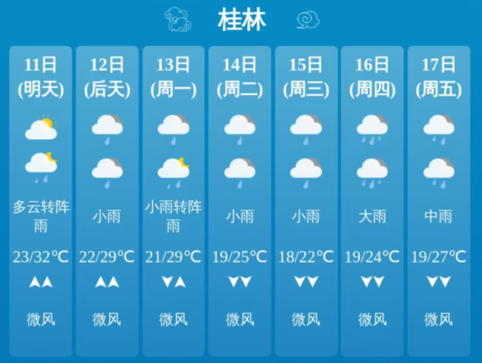 具体预报如下(温度指桂林市区):