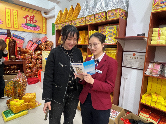 另一方面,我行工作人员也通过发放宣传折页、现场讲解等方式给广大市民进行宣讲,引导群众不购买、不使用违规祭祀用品,倡导文明祭祀、依法用币,净化市场与祭祀环境。