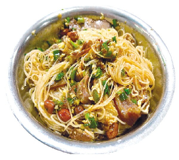 到了炎热的季节,店里真正吸引人的,是一碗让食客一见就馋、一尝难忘的凉拌红油米粉。刚端上桌,莹白脆弹的出榨米粉整齐铺在碗中,卤得油亮入味的大肠、猪耳朵、卤肉等卤味切成薄片码在一侧,金黄酥脆的花生撒在顶端,翠绿葱花、白嫩蒜末点缀其间,一勺红亮剔透的秘制红油缓缓淋下,顺着粉丝慢慢渗透,香气猛地炸开,还没动筷,口水已经在嘴里打转。