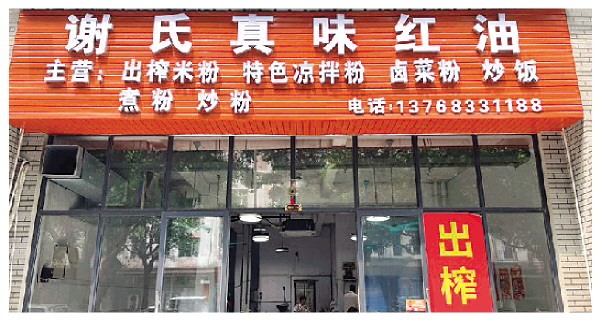 日前,记者来到谢氏真味红油米粉店,正值中午用餐高峰,店内座无虚席,带着全州方言的谈笑声、嗦粉声交织在一起,烟火气十足。