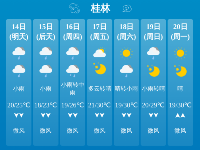 具体预报如下(温度指桂林市区):