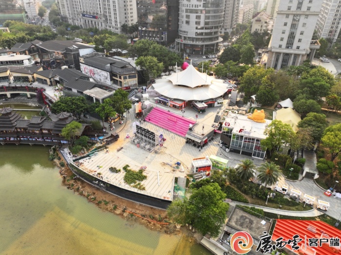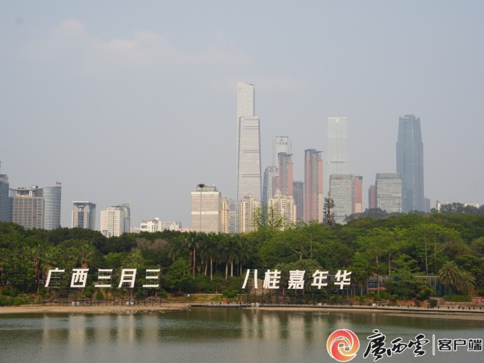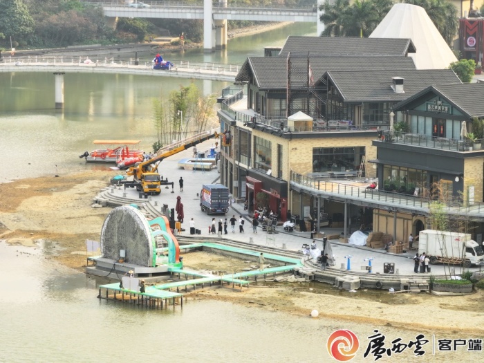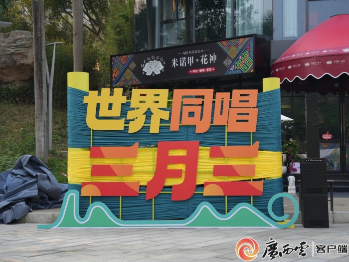 民歌湖装扮一新,“三月三”元素随处可见,节庆氛围日益浓郁。