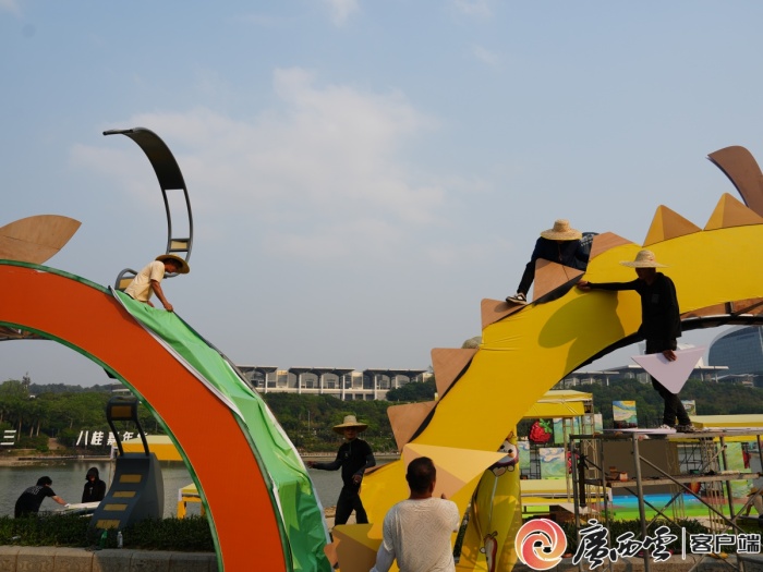 2026年“广西三月三·八桂嘉年华”开幕式将于4月18日上午在南宁市民歌湖举行。4月13日下午,记者前往民歌湖探访发现,目前各项布置工作正有条不紊地开展,各式各样的“三月三”元素已随处可见,浓郁的节庆氛围扑面而来。