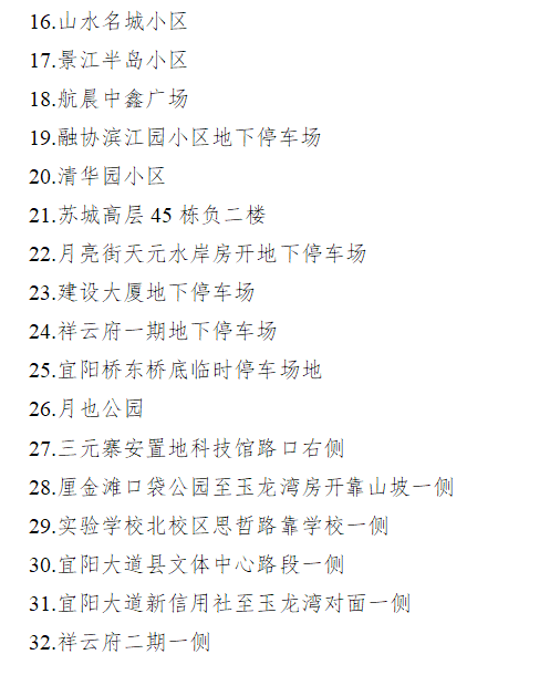 免费范围:全县机关企事业单位的停车场(学校除外)、县城内道路两旁所有停车位