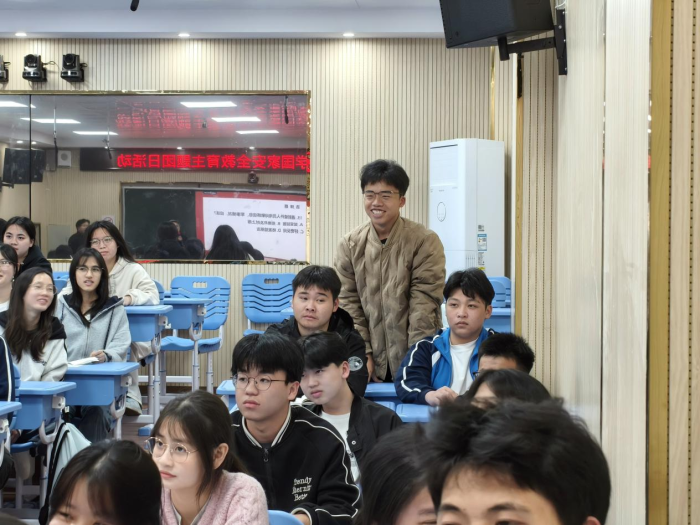 为进一步巩固学习成果,活动设置了国家安全知识趣味抢答环节。题目内容涵盖总体国家安全观、相关法律法规及日常安全常识,兼具知识性与趣味性。同学们踊跃参与、积极抢答,现场气氛热烈活跃。问答之间,国家安全知识在轻松愉快的氛围中不断深化、巩固。