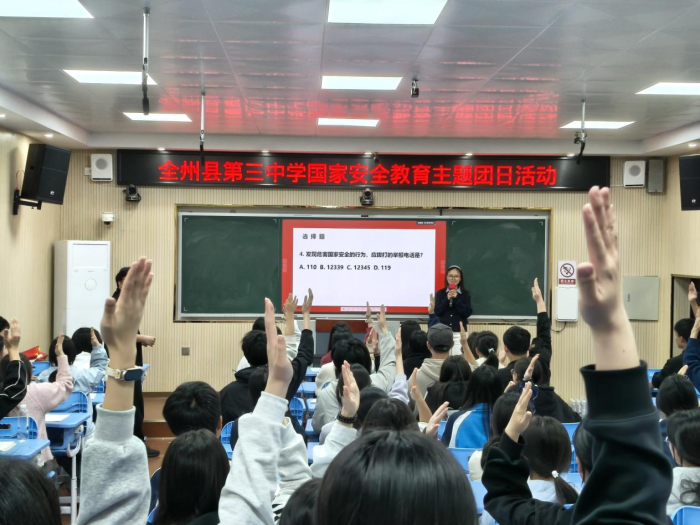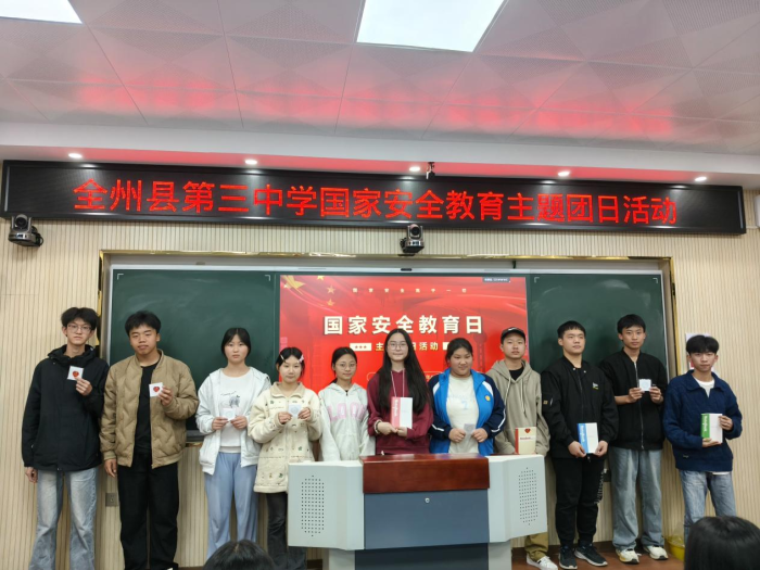 为深入学习贯彻总体国家安全观,进一步增强团员青年的国家安全意识和法治素养,4月14日,全州县第三中学团委组织开展“国家安全教育日”主题团日活动,以理论学习、互动实践、青春倡议相结合的方式,引导青年学子将国家安全意识内化于心、外化于行,汇聚起守护国家安全的青春力量。