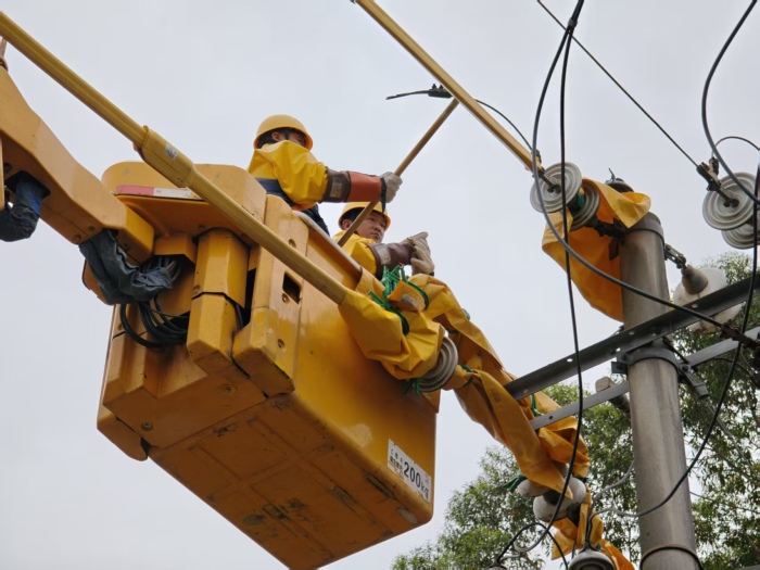 “夜间视线差,我们只能通过人工巡视对线路进行故障隐患排查,并对线路故障区域进行隔离,尽可能恢复部分供电。”城区供电所副经理毛宗旭说。在全力抢修的同时,桂林永福供电局坚持“先复电、后抢修”原则,充分利用配网自动化技术,快速隔离故障区段,恢复非故障区域供电。对于短时间无法修复的线路,通过“人巡+机巡”的模式,利用无人机提升故障查找效率,以“带电作业”的方式对部分线路进行不停电检修,并紧急调配应急发电车、发电机前往重要用户和居民集中区,提供临时电源保障,最大限度降低停电影响。