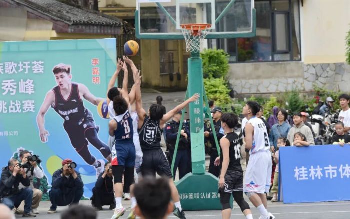 当天上午,壮见篮球•桂林秀峰城际三人制篮球联赛与单挑王挑战赛也在张家村同步启动,热血篮球赛事落地秀峰,联动城市战队、民间高手,广西篮球明星(前CBA队员)助力赛事,为现场观众带来了一场精彩绝伦的篮球盛宴。赛事现场,球员们激烈角逐,挥洒汗水,展现出了高超的球技和顽强的拼搏精神,引得观众们阵阵喝彩。此外,甲山街道首届“三月三”村社气排球赛半决赛、决赛,也于4月17日在中隐小学开赛。