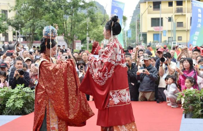 春日的秀峰,山歌飞扬,风情万种。这场精彩的民族歌圩盛宴,不仅为市民游客带来了丰富的文化体验,也让“三月三”这一传统佳节焕发出新的生机与活力。