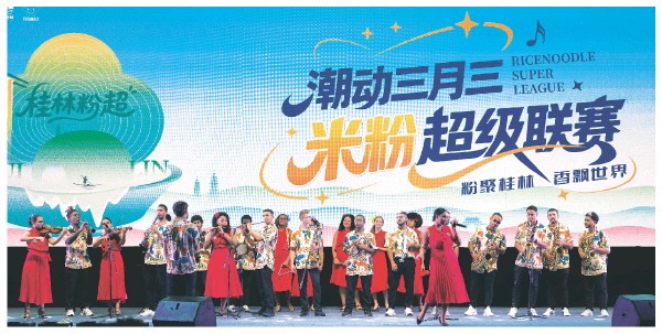 本报讯(记者李思静 文/摄)春夜、晚风、米粉、音乐……4月18日晚,“北大人的音乐行旅”空降“潮动三月三·桂林首届米粉超级联赛”现场,《桂林的米粉任你嗦》《那碗》《对山水》《桂林山水谣》《粉嘟嘟的桂林》及《甲天下未说尽的温柔》等一系列为桂林山水与“粉超”专门创作的歌曲,唱出桂林山水的风光与烟火温情。