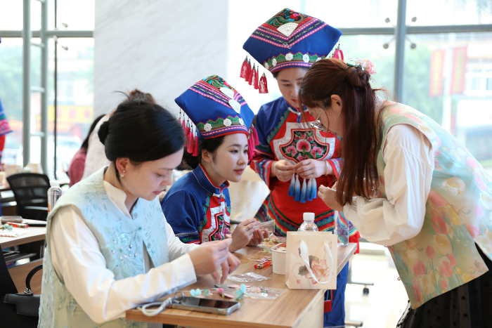 活动现场特别邀请绒花专业指导老师晓荷现场教学。老师深入浅出地讲解了绒花的历史渊源与非遗工艺,从理丝、打尖到造型,细致拆解每一步制作要点,带领大家沉浸式感受这项传统技艺的独特魅力。参与者们手持丝线与工具,在老师的耐心指导下认真创作,指尖翻飞间,一朵朵精致灵动的绒花次第绽放,现场暖意融融、欢声笑语不断。员工与客户们一同沉浸在非遗创作的乐趣中,在丝线缠绕间拉近了彼此距离,感受着传统工艺带来的治愈与美好。
