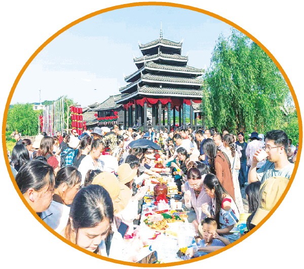 4月18日,阳朔世外桃源景区长桌宴吸引众多游客参与。 通讯员钟玲丽 摄