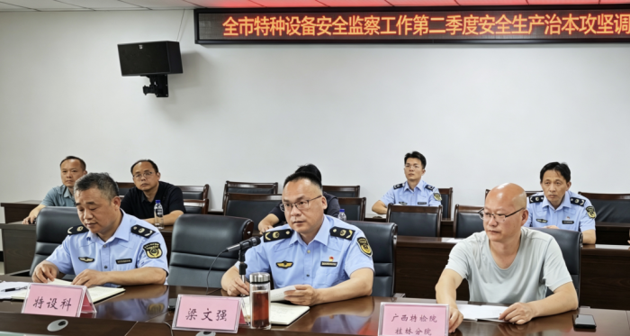 会议以视频形式召开,桂林市市场监管局设主会场,各县(市、区)市场监管局设分会场,全市市场监管系统及广西特检院桂林分院共100余人参加。桂林市市场监管局副局长梁文强参会并讲话。