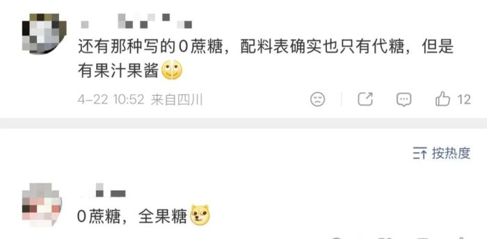 在一则#全糖的写0脂 全脂的写0糖#的话题评论区中,不少网友表示“被骗了多年”。