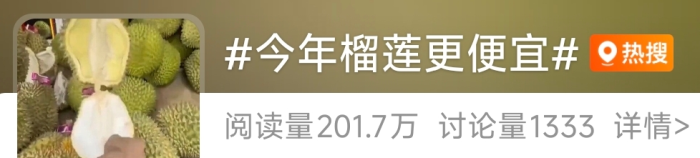 4月中旬,泰国、马来西亚等主产区榴莲进入采收高峰期。榴莲批发商介绍:“今年泰国榴莲产量比往年增加30%—40%。”