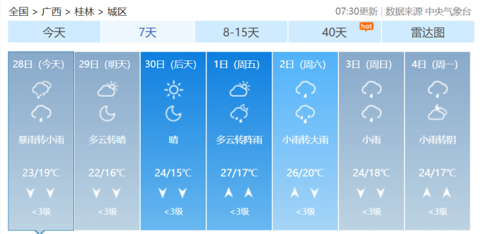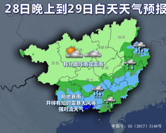 广西气象台28日05时发布预报: