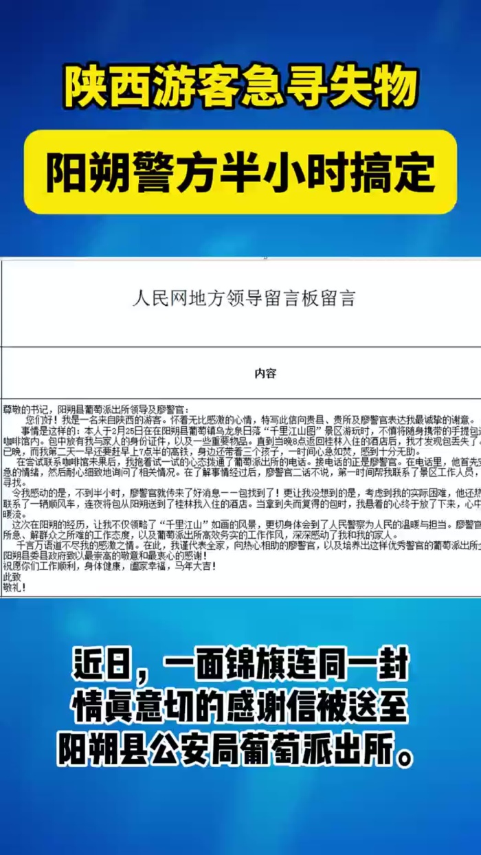 陕西游客急寻失物,阳朔警方半小时搞定