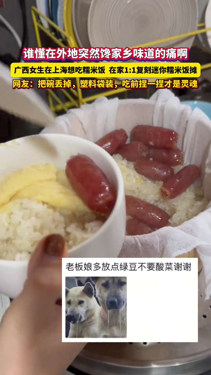 谁懂在外地突然馋家乡味道的痛啊!广西女生在上海想吃糯米饭,在家1:1复刻迷你糯米饭摊
