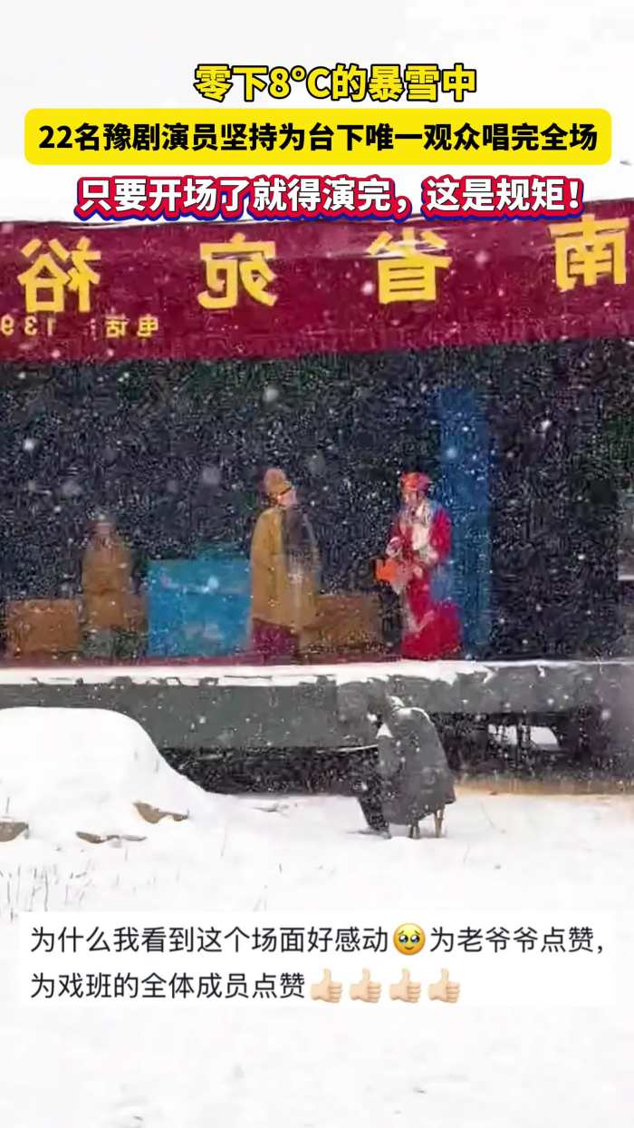 零下8℃的暴雪中,22名豫剧演员坚持为台下唯一观众唱完全场!只要开场了就得演完,这是规矩