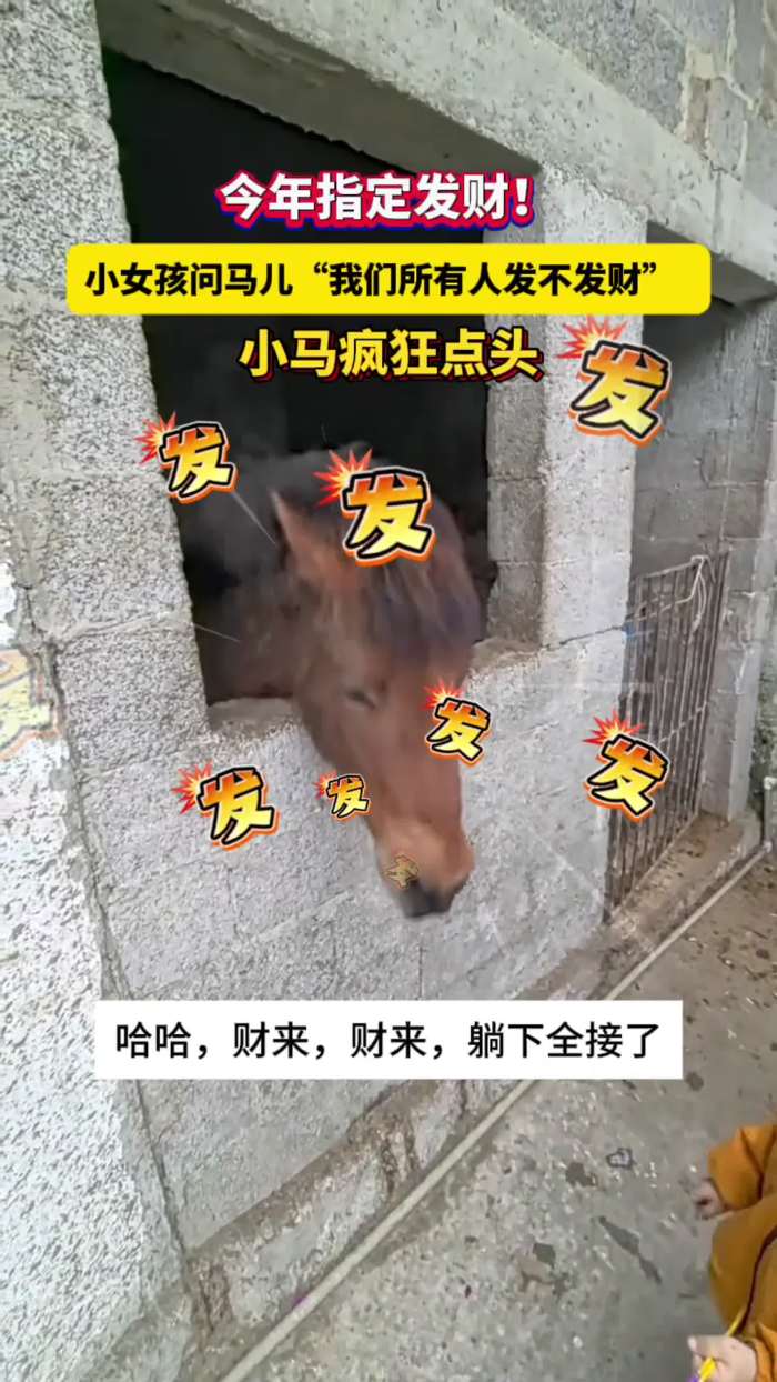 今年指定发财!小女孩问马儿“我们所有人发不发财”,马儿疯狂点头