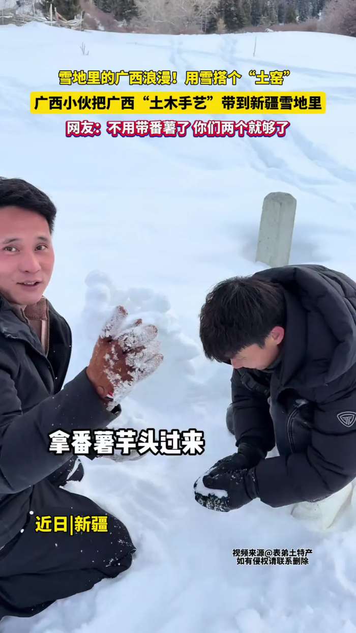 雪地里的广西浪漫!广西小伙在新疆用雪搭了一个“土窑”