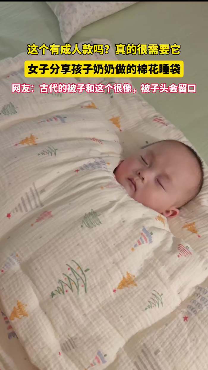 这个有成人款吗?真的很需要它!女子分享孩子奶奶做的棉花睡袋