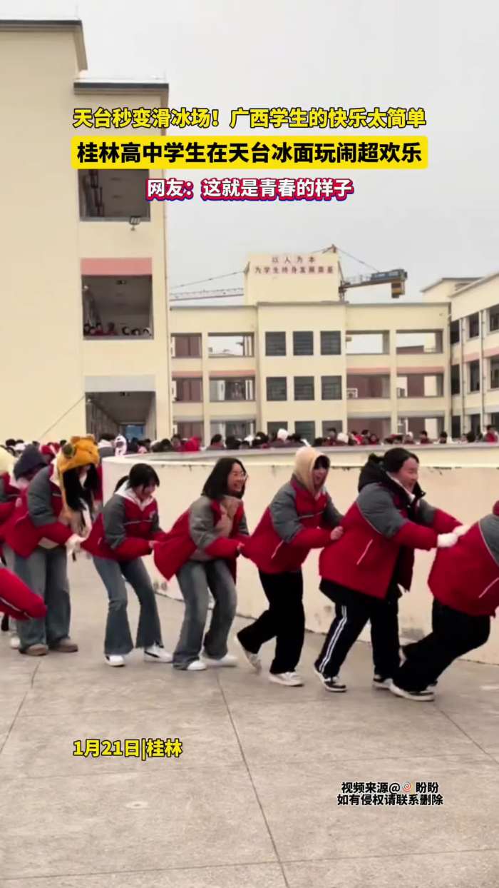 这就是青春的样子!桂林高中生在天台冰面玩耍超欢乐